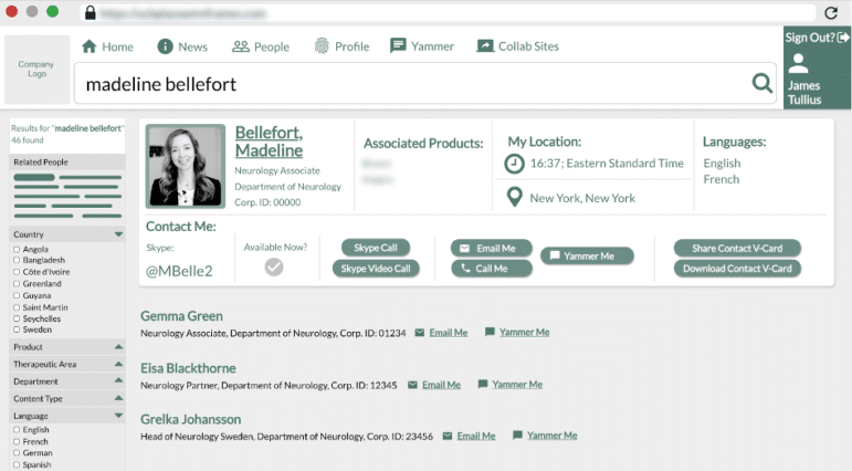 “People” action-oriented search result page redesign for global staff.